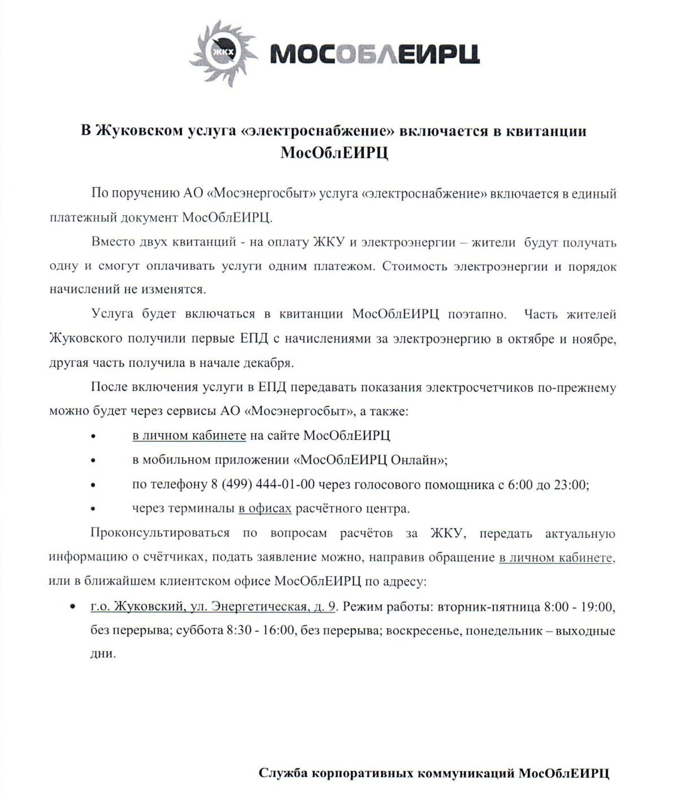 Служба корпоративных коммуникаций МосОблЕИРЦ
